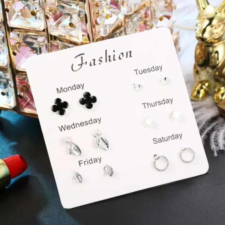 Black Flower - Pack of 6 Weekly Silver Stud Earrings Combo. Earrings for your daily and office wear.