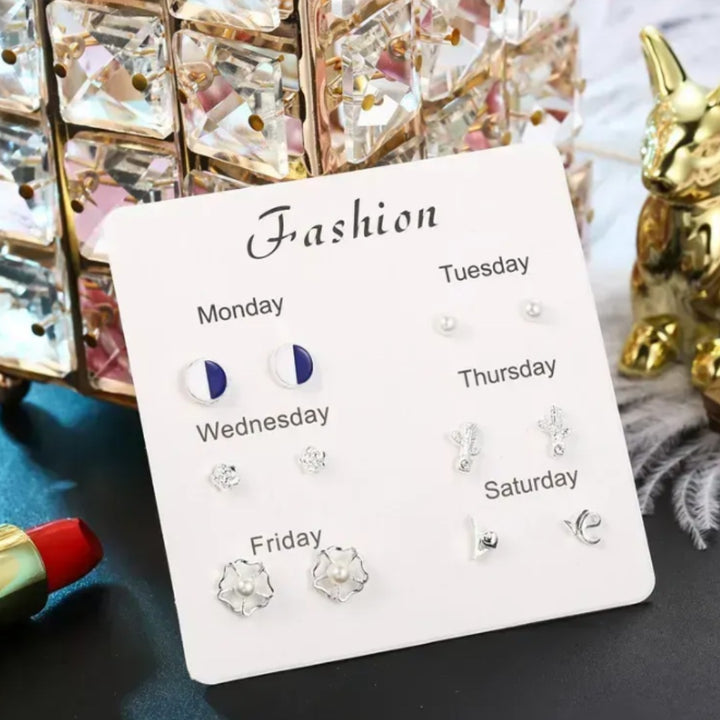 Blue Circle - Pack of 6 Weekly Silver Stud Earrings Combo