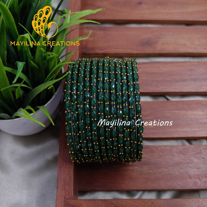 Bottle Green Matte Raindrop Glass Bangles (Set of 12 Bangles)
