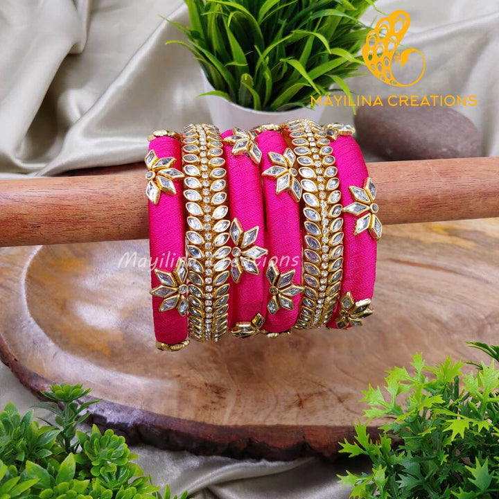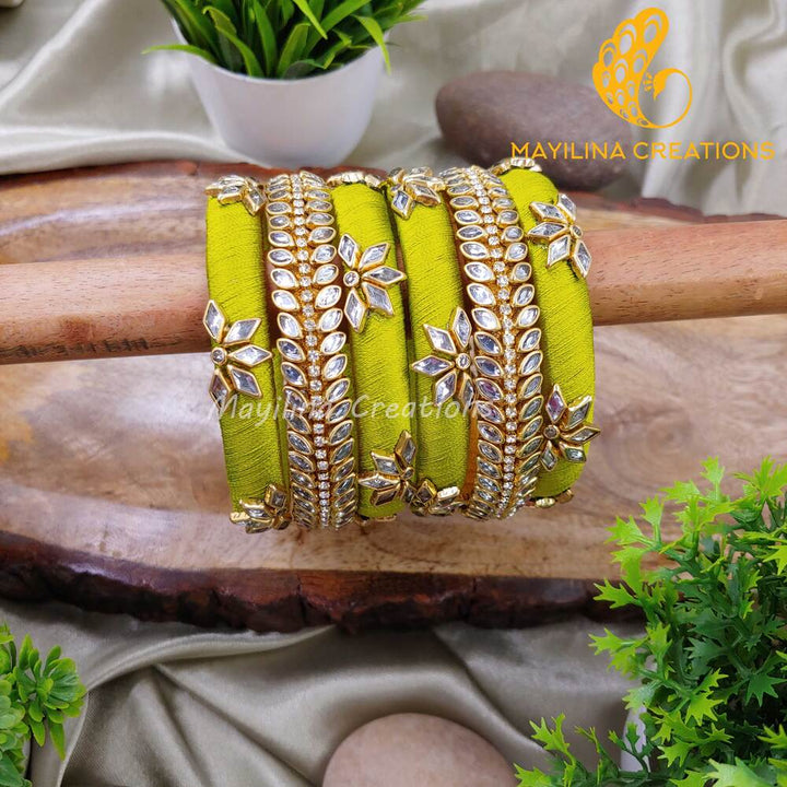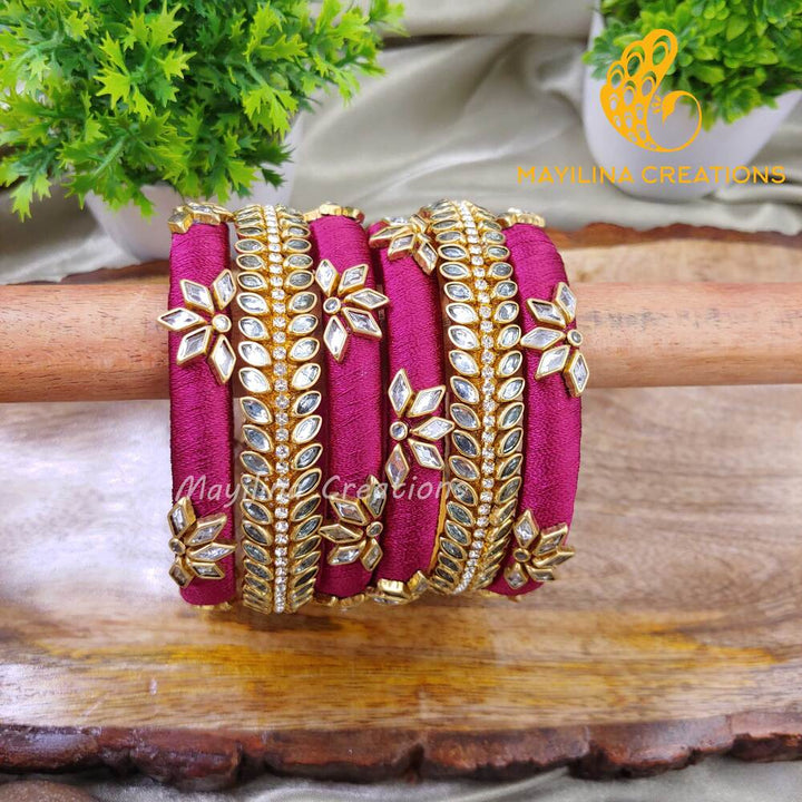 Saira - Budget Friendly Silk Thread Bangles. Mayilina Creation is your one stop destination for a handmade silk thread bangles, earrings and saree pins for all occasions.Mayilina Creations provides a perfect bangle with finest finishing, that makes your complete attire unique. We do have perfect return gift bangles for Wedding, Baby Shower, Housewarming, Birthday, Navratri, Diwali, Pooja etc.