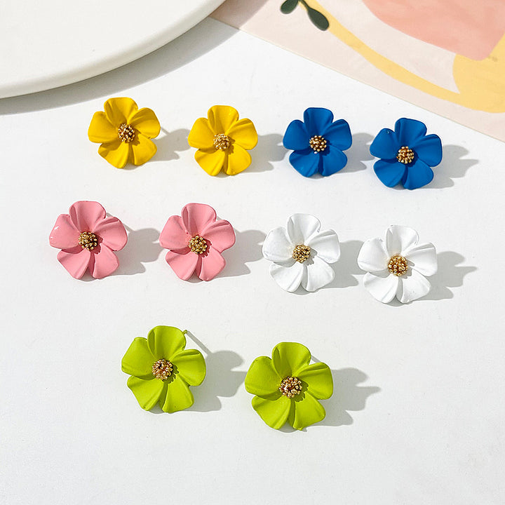 Dahlia - Flower Earrings for Girls and Women, Korean Style Earrings. Cute minimal green flower stud for your daily and office wear.