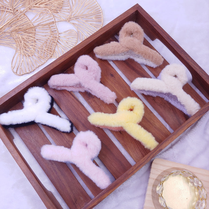 Embrace a cozy aesthetic with our fur-adorned hair claw, designed to blend fashion and comfort. Whether for a quick half-up or a full updo, this claw ensures your hair stays chic and in place.