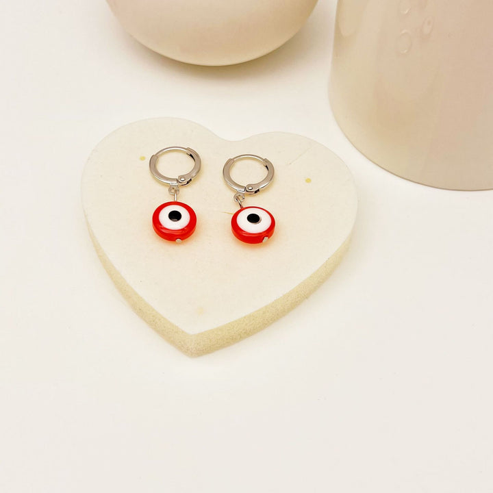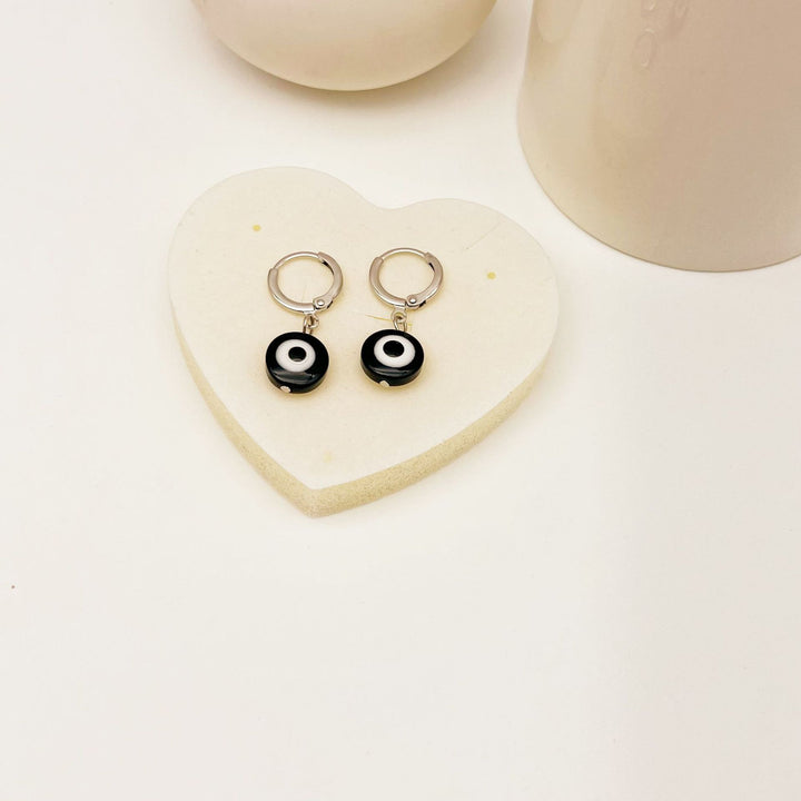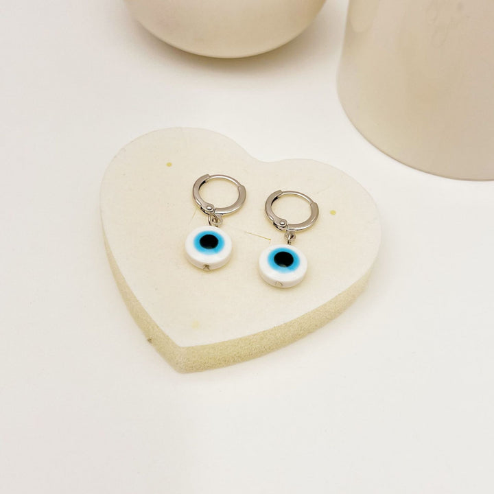 Evil Eye - Silver Hoop Earrings. Minimal Earrings for your party and office wear.