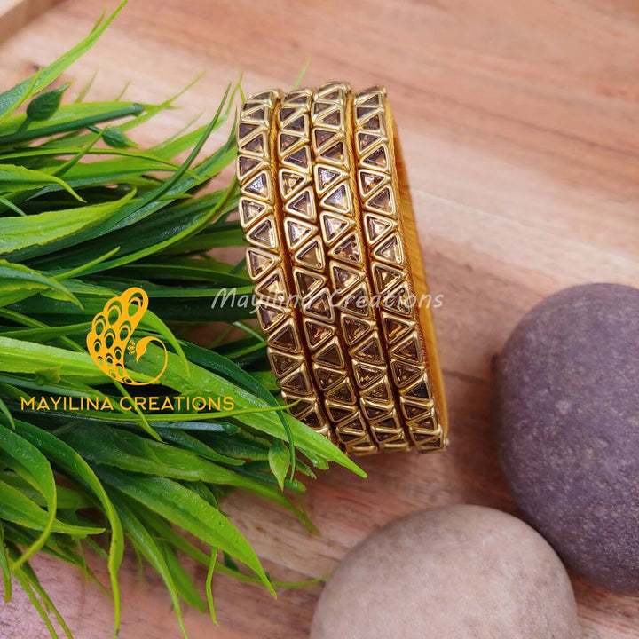 Gold Triangle Pattern Kundan Single Line Silk Thread Bangles (Set of 4)