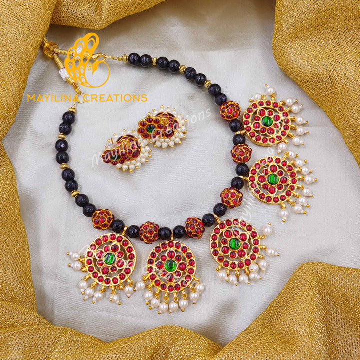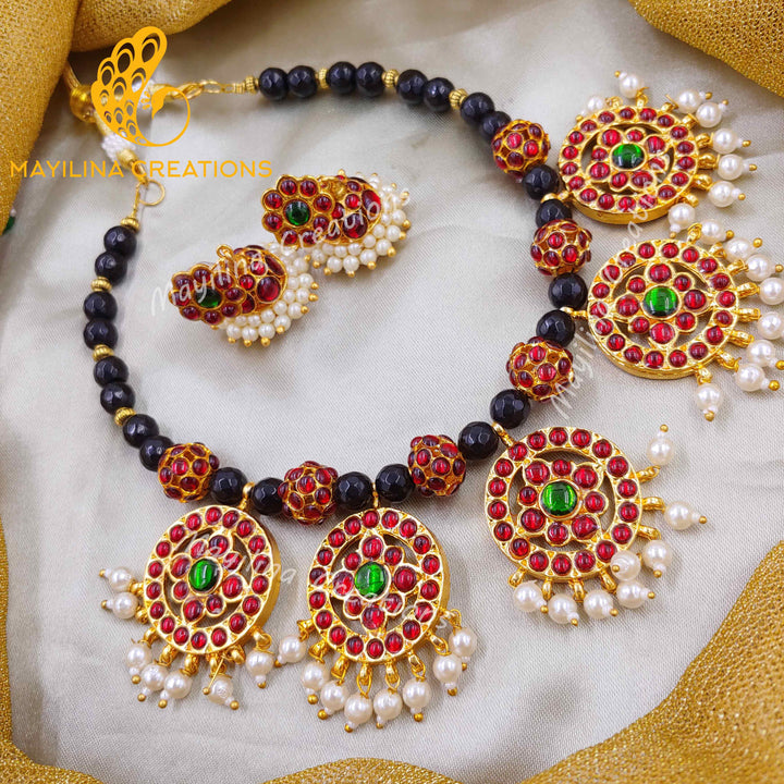 Copper/ Brass based Jewelry with Artificial Kemp Stones and Kemp Rudra. Beads are natural semi-precious agates.