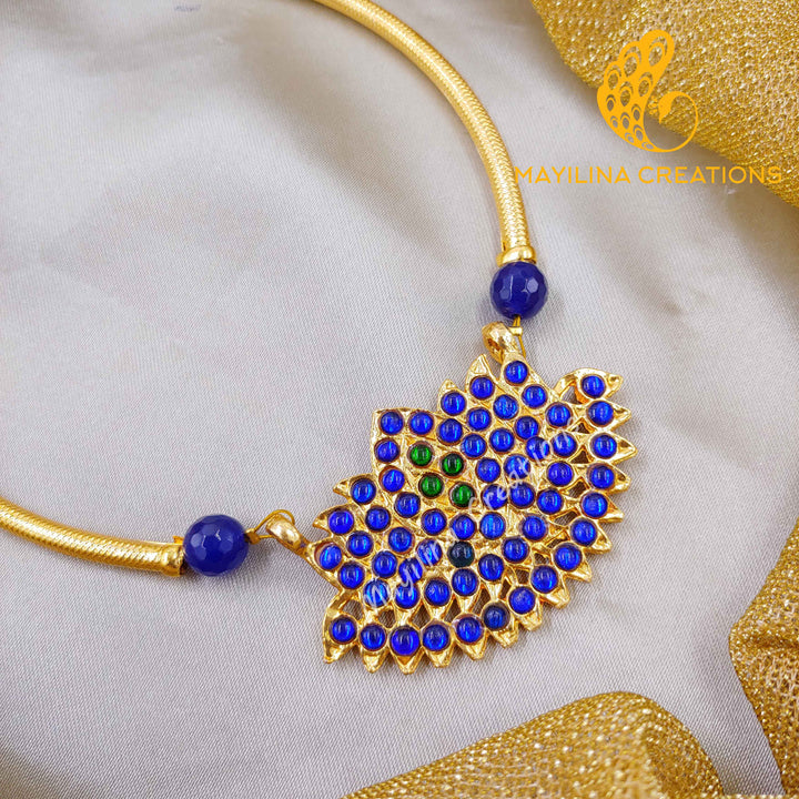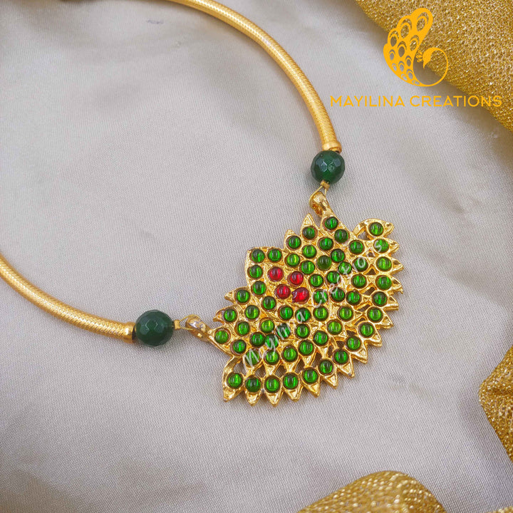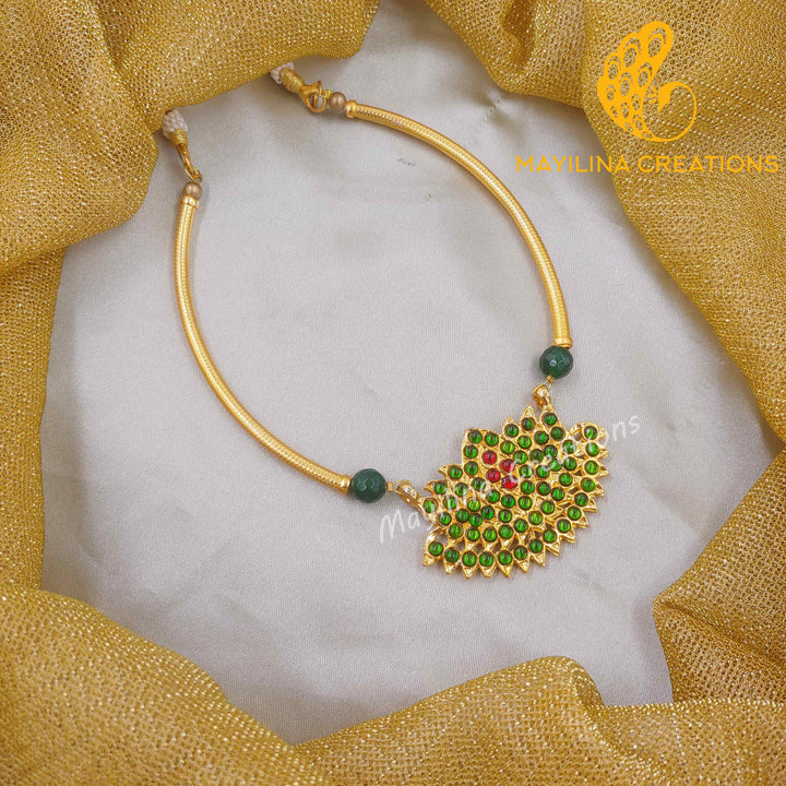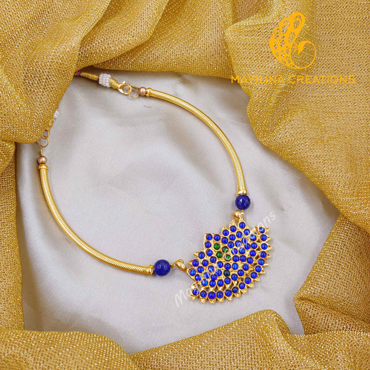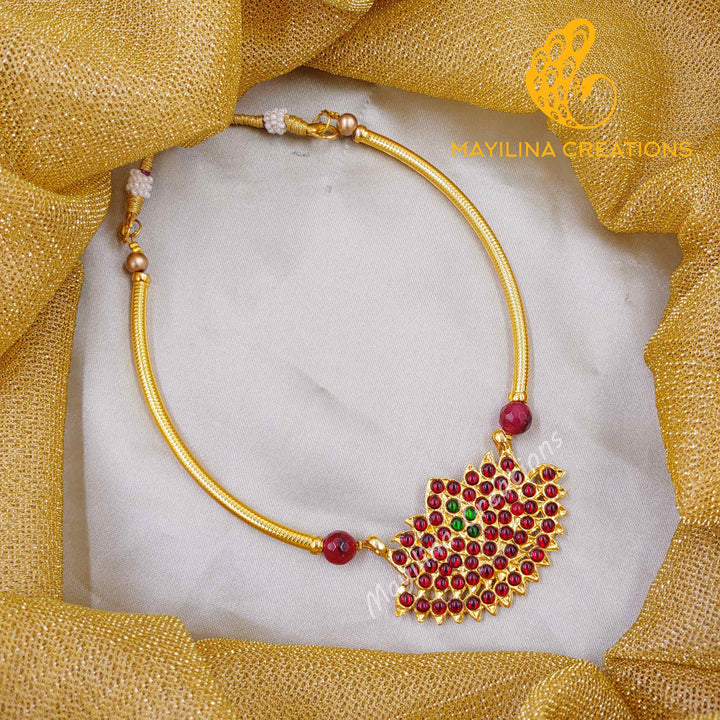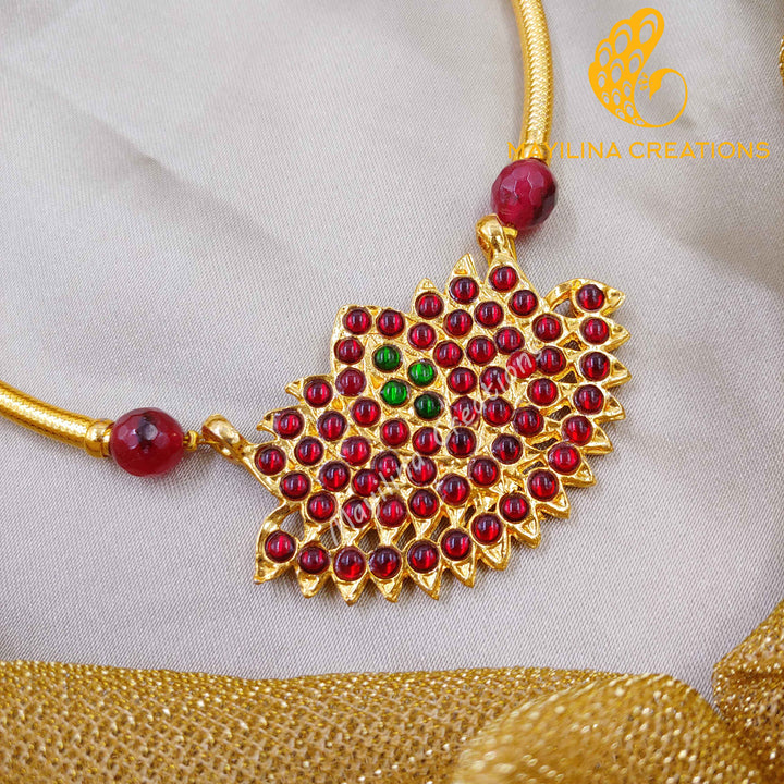 Kamali - Kemp Lotus Choker Handmade Indian Traditional Jewelry. Traditional Kemp Lotus Necklace available in Ruby Red, Green and Blue color. These are handmade Kemp jewelry.