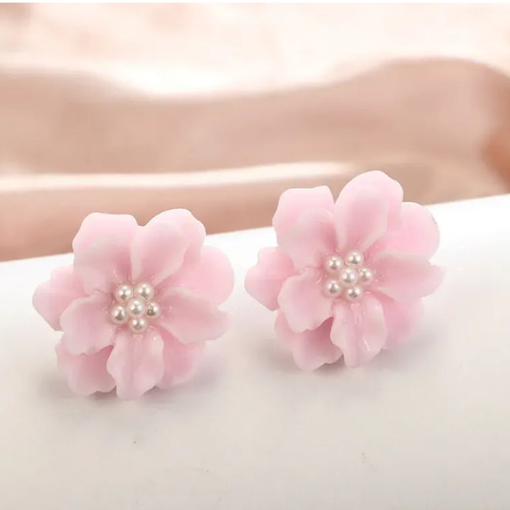 Korean Bright Orange Acrylic Flower Stud for Women