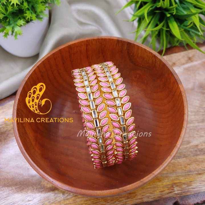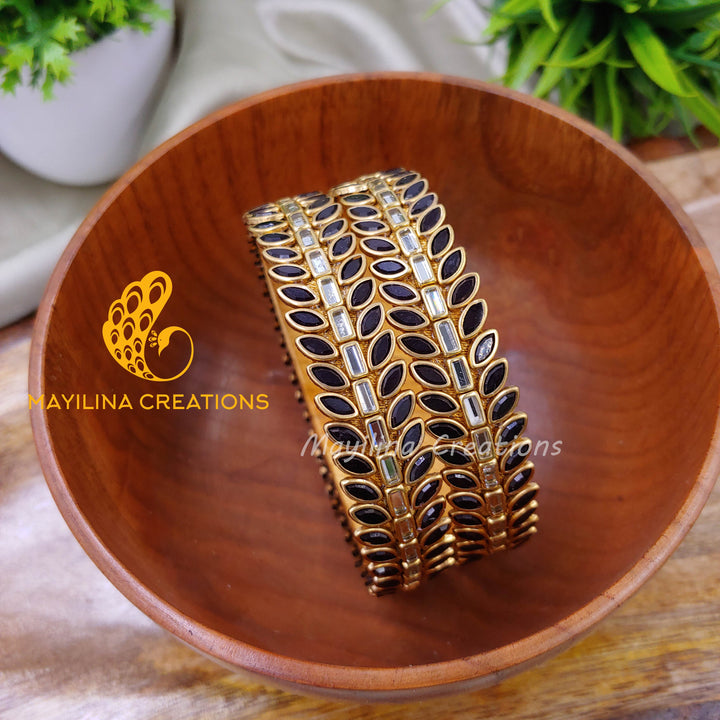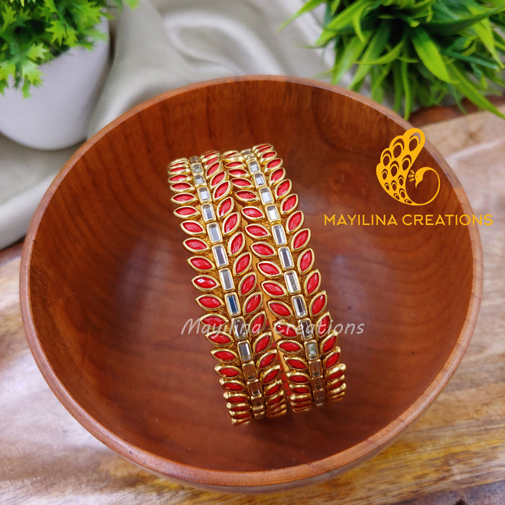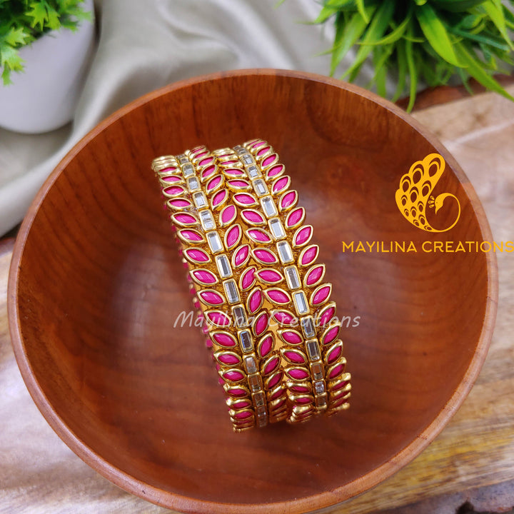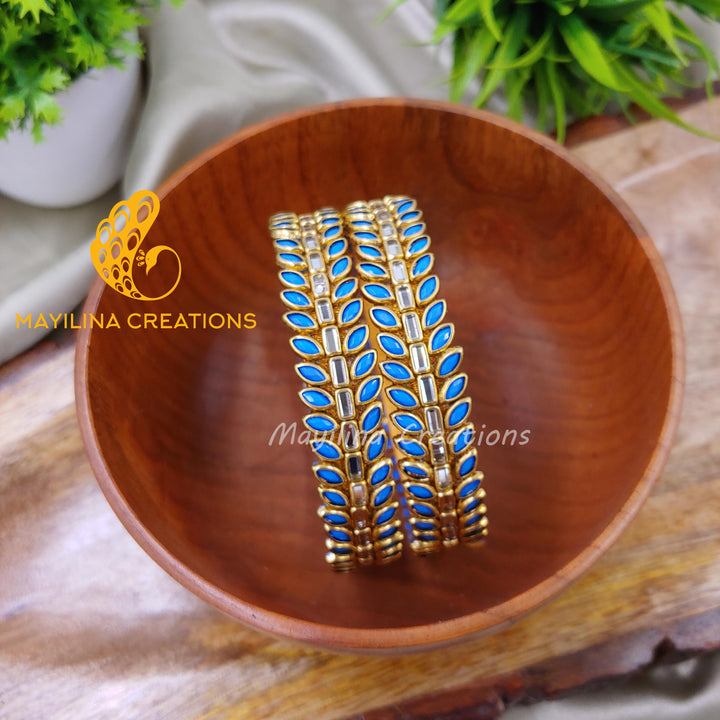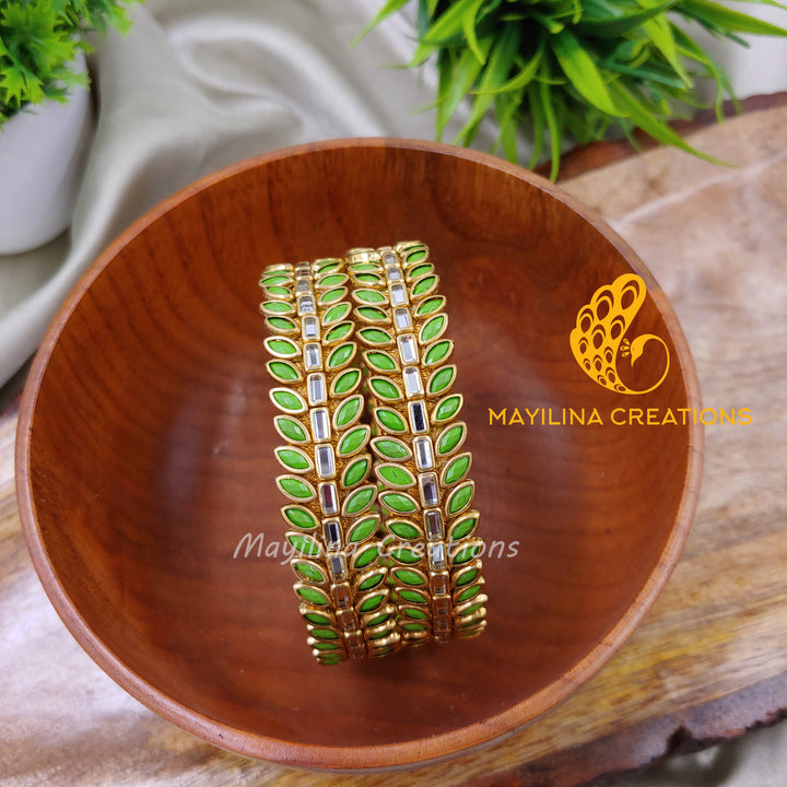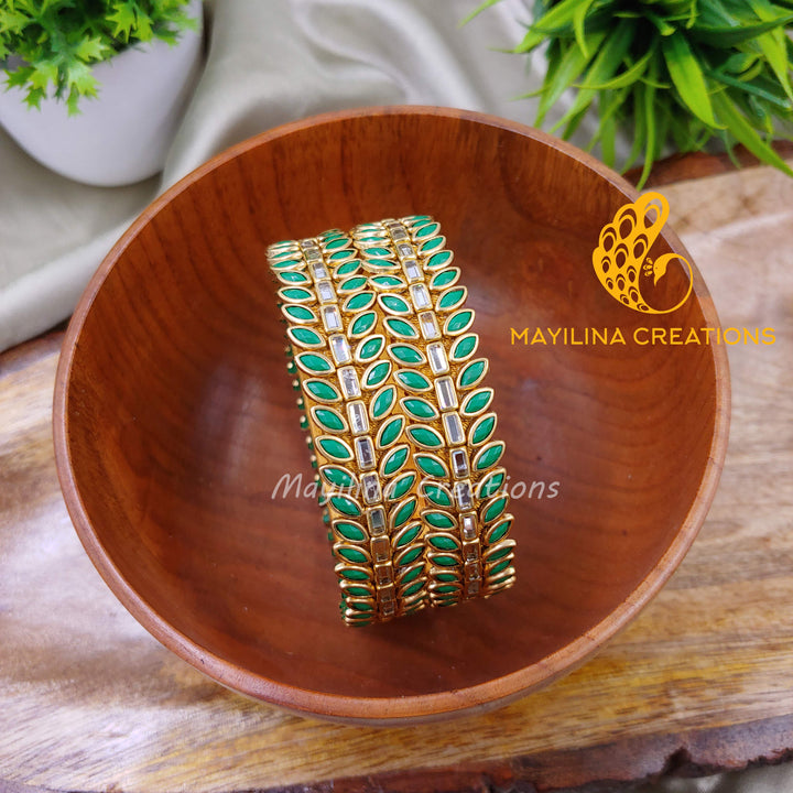 Leaf Pattern Kundan Silk Thread Bangles Design