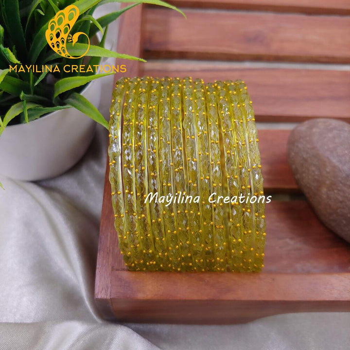 Light Olive Raindrop Glass Bangles (Set of 12 Bangles)