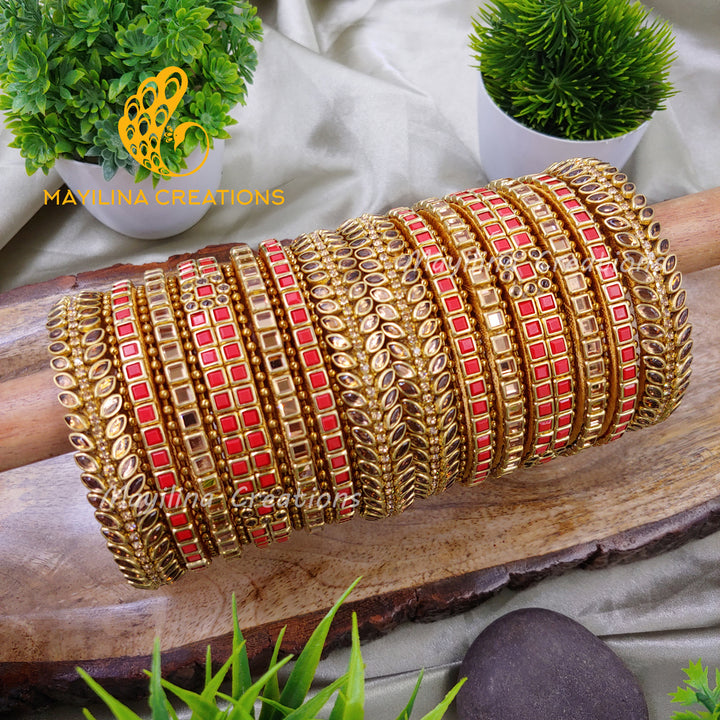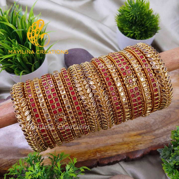 Elegant Kundan Silk Thread Bangles with Gold Bead Bangles for Wedding. Mayilina Creations is your one stop destination for a handmade silk thread bangles, earrings and saree pins for all occasions. Mayilina Creations provides a perfect bangle with finest finishing, that makes your complete attire unique. We do have perfect return gift bangles for Wedding, Baby Shower, Housewarming, Birthday, Navratri, Diwali, Pooja etc.