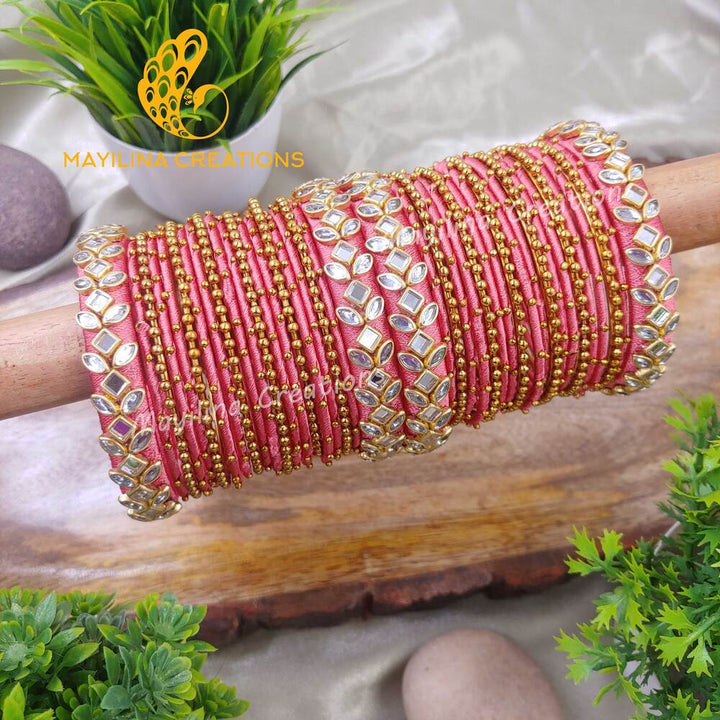 Mekavi - Metal Thread Bangles with Gold Bead and Border Bangles for Women