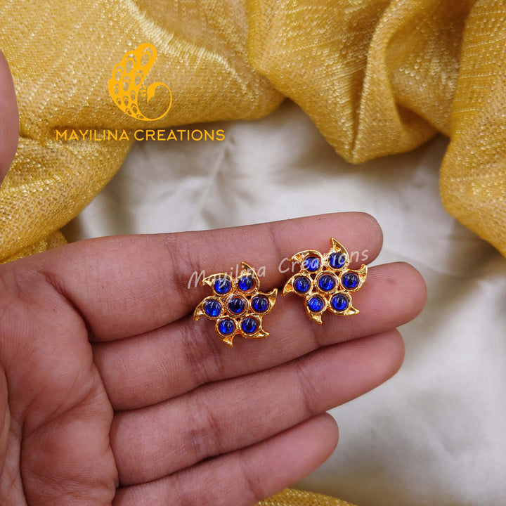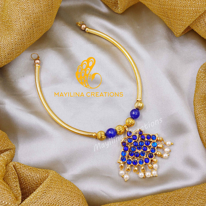 Pallavi - Blue Kemp Choker with Flower Stud Handmade Indian Traditional Jewelry