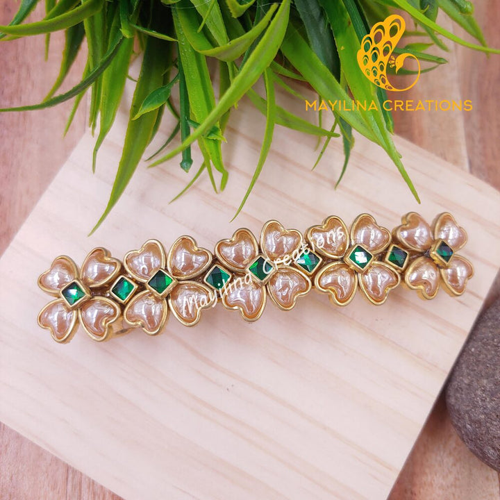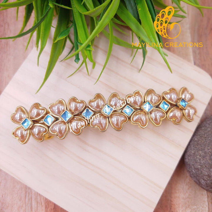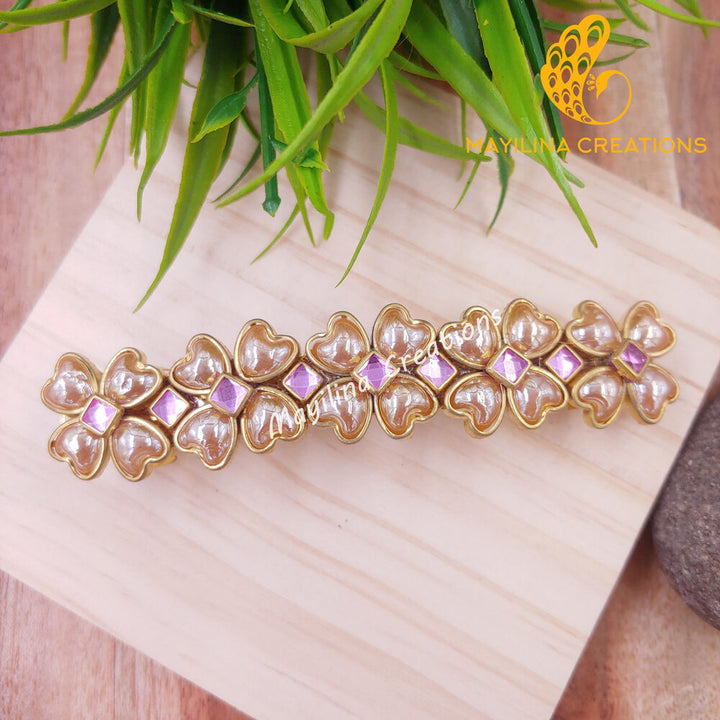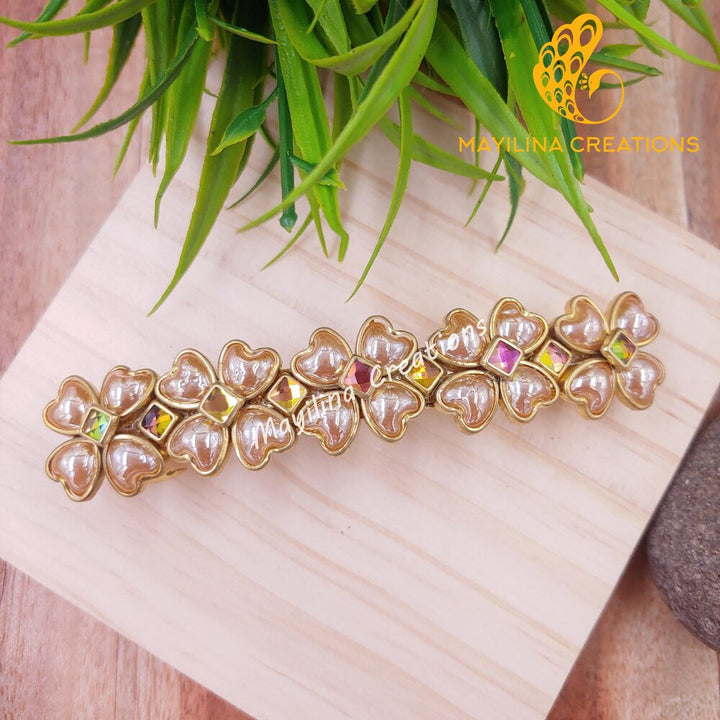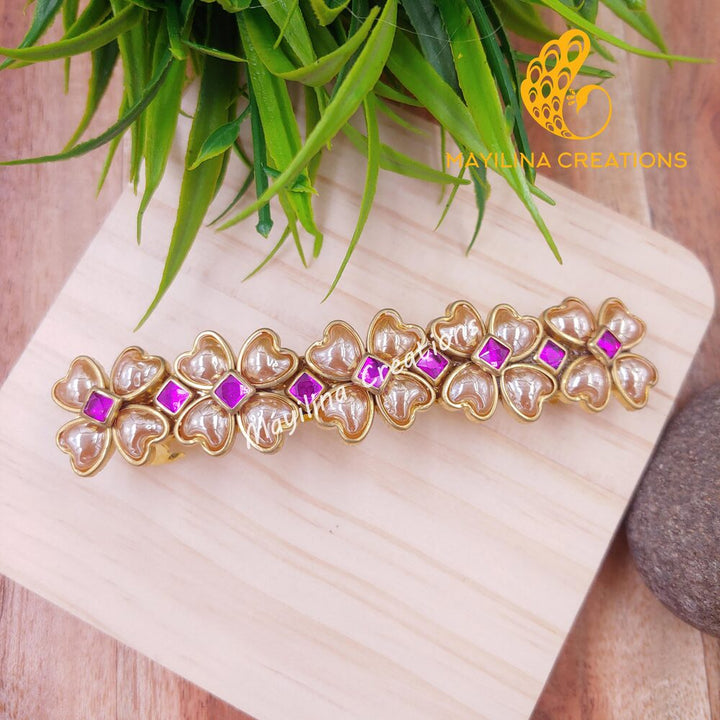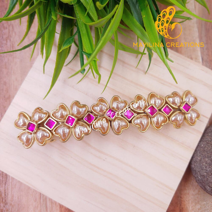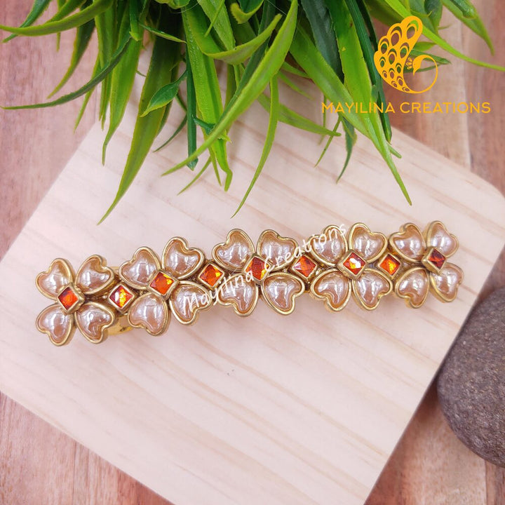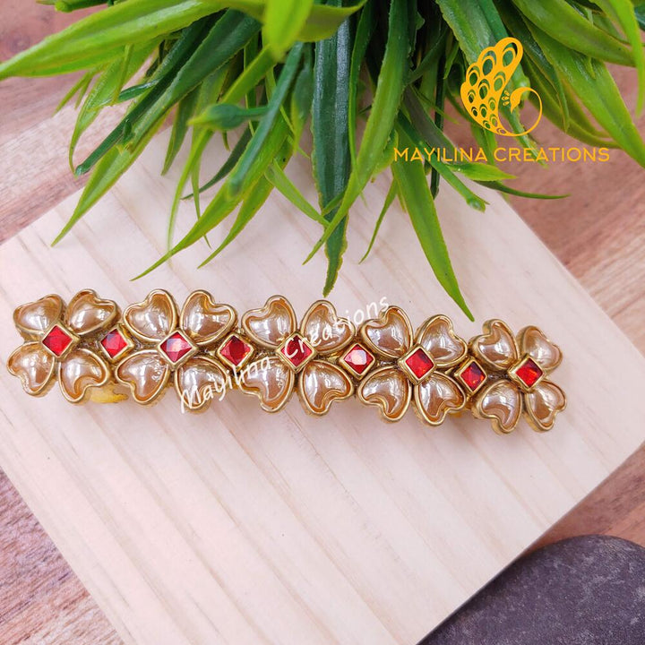 Red and Gold Pearl Kundan Large Centre Clip (Size - 8cm).