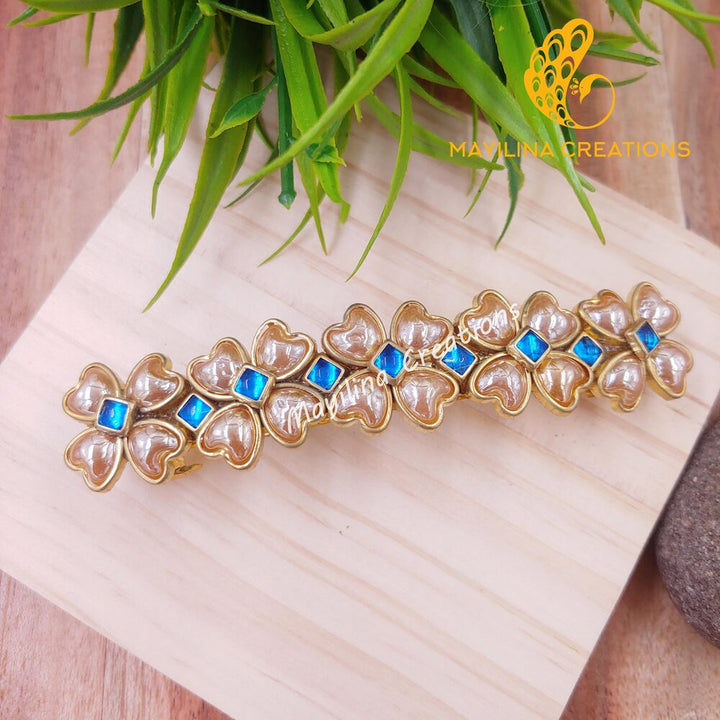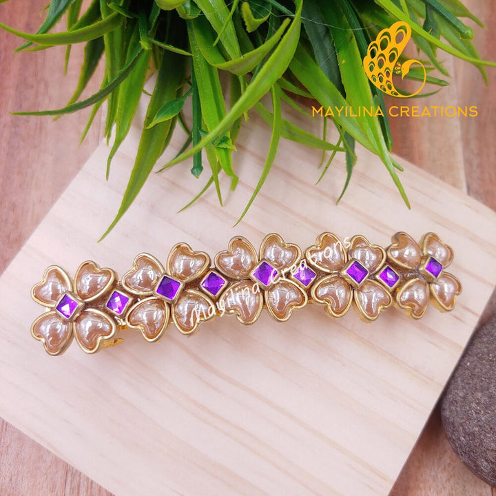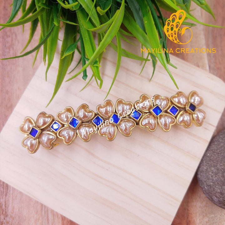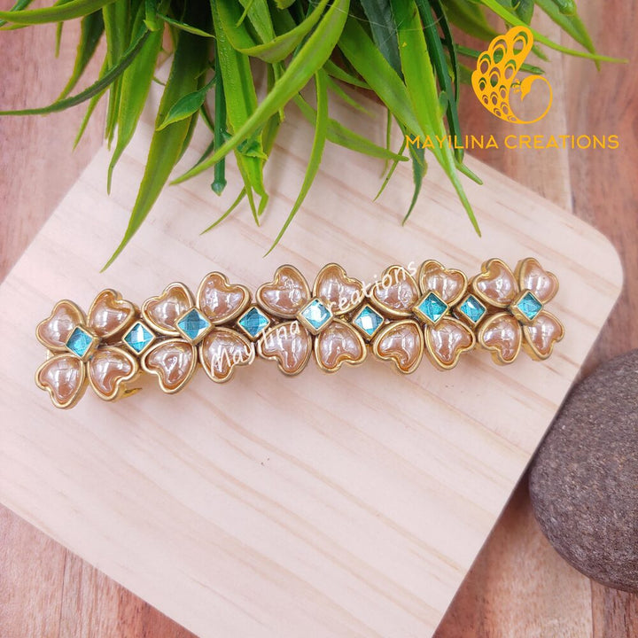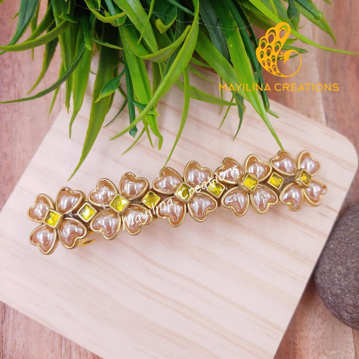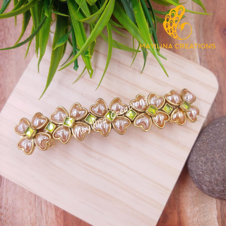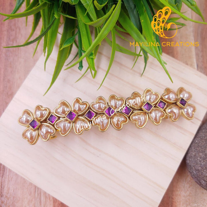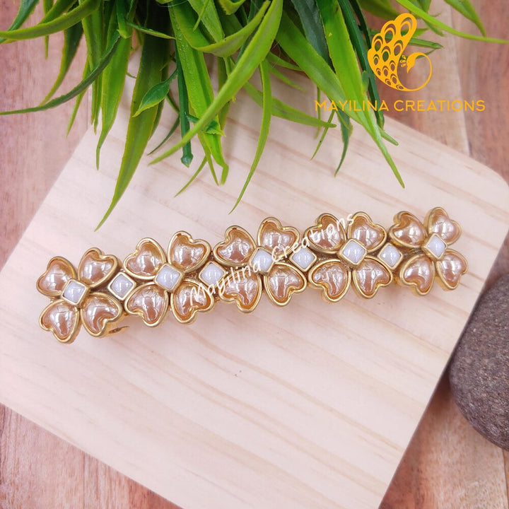 Red and Gold Pearl Kundan Large Centre Clip (Size - 8cm).