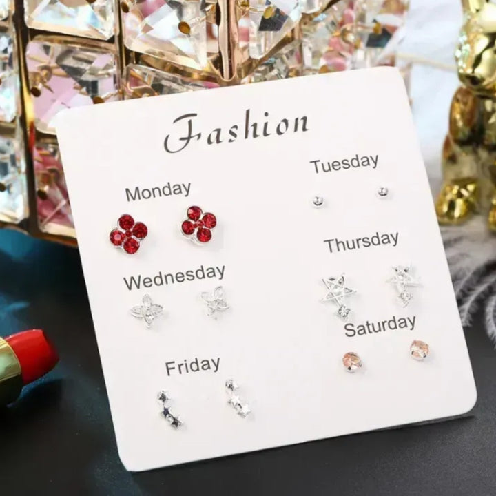 Red Flower - Pack of 6 Weekly Silver Stud Earrings Combo. Earrings for your daily and office wear.