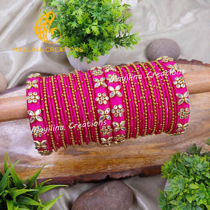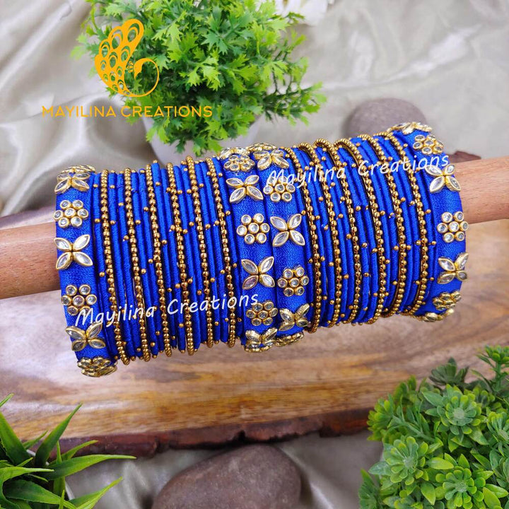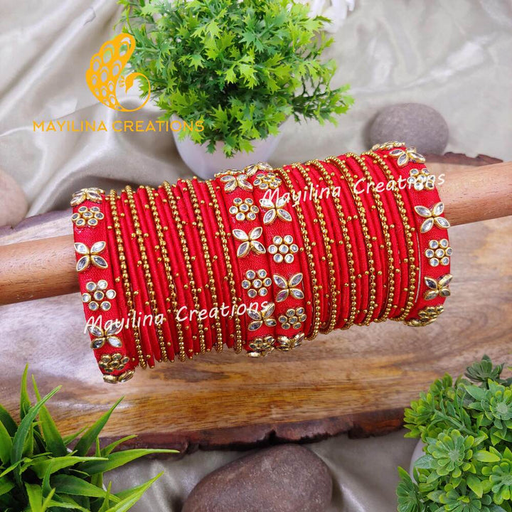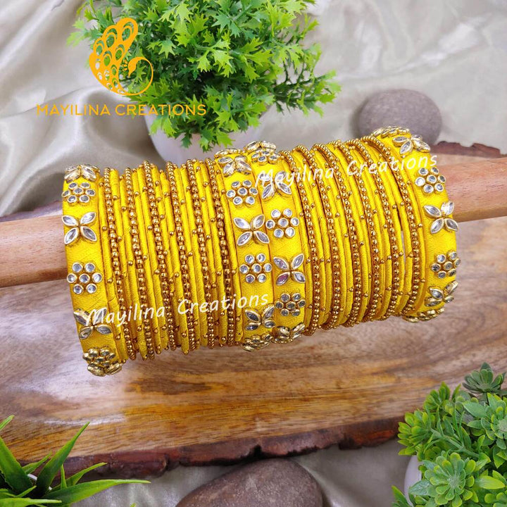 Silk Thread Bangles with Metal Bangles and Metal Gold Bead Bangles for Women, for Wedding