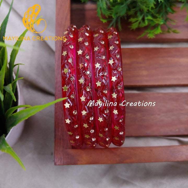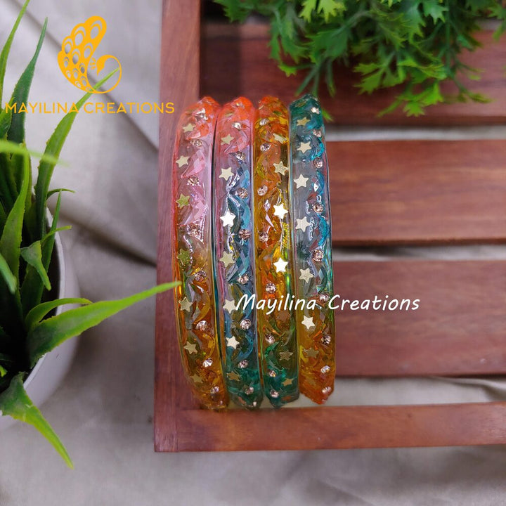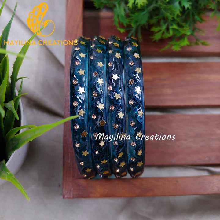 Sparkling Star Glass Kada Bangles - Celestia (Set of 4 Bangles)