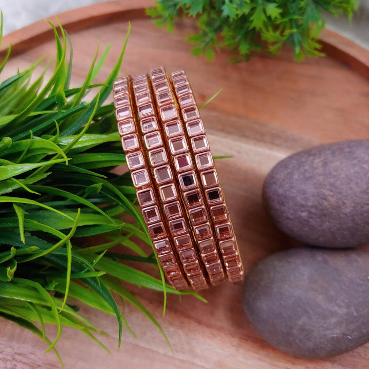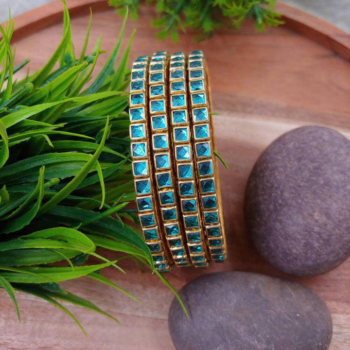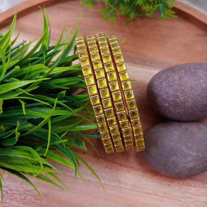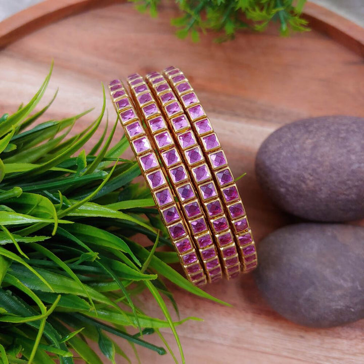 Square Gloss Kundan Single Line Silk Thread Bangles (Set of 4)