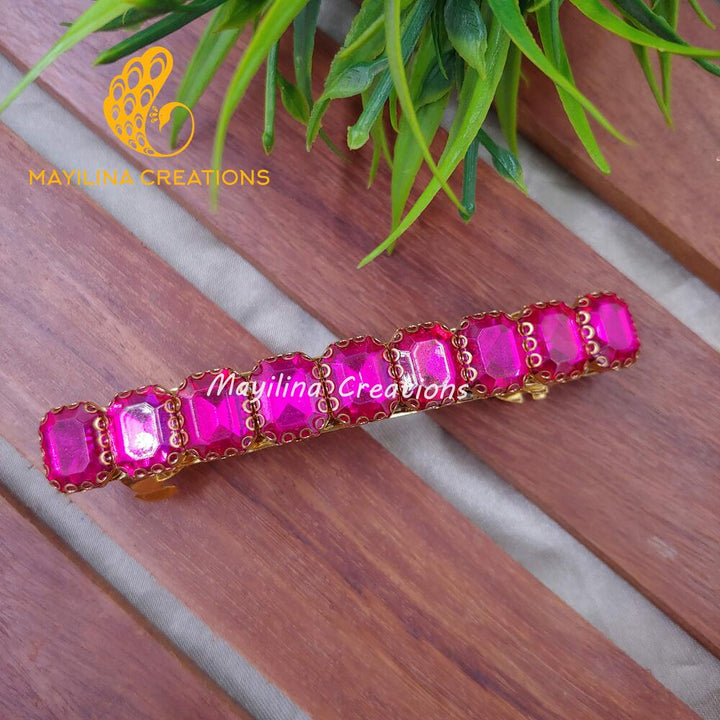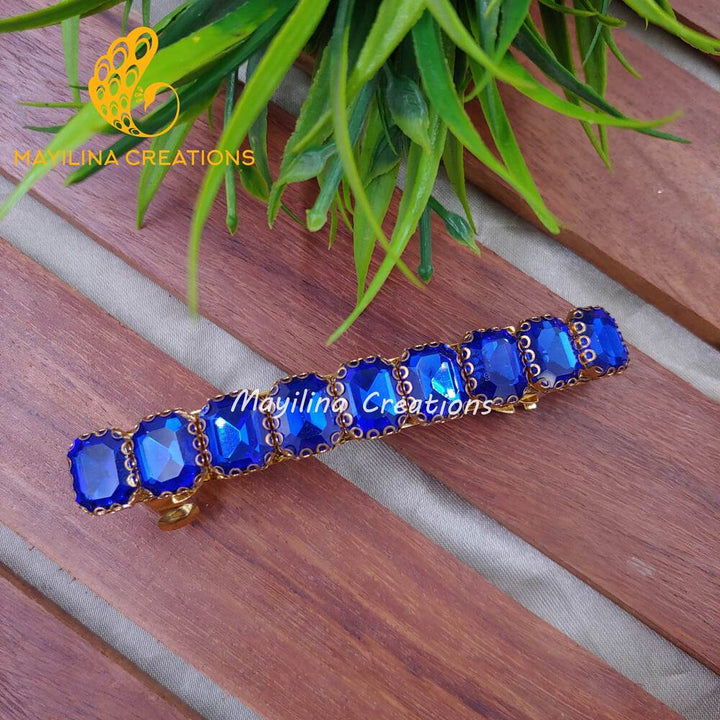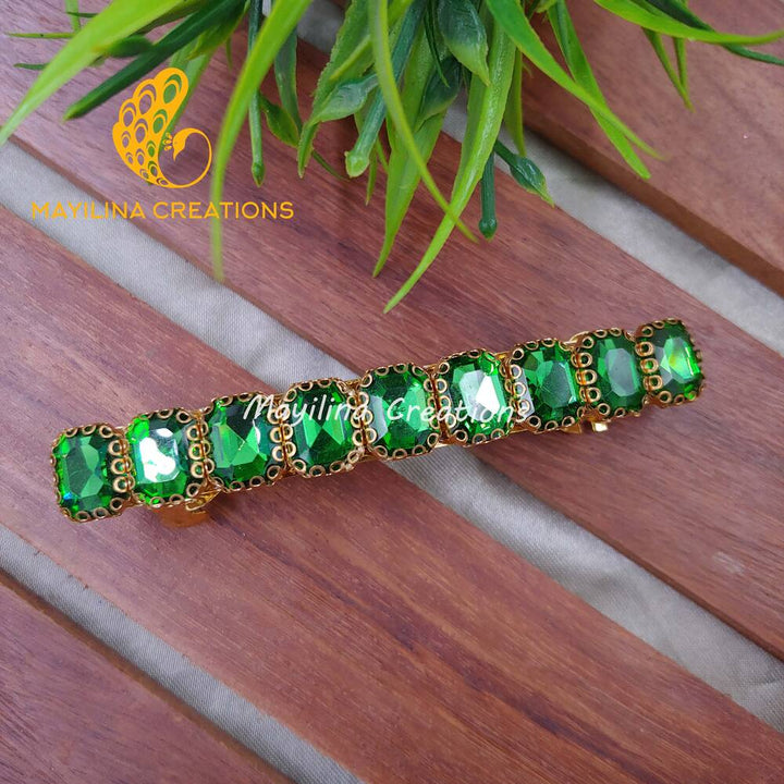 Discover the beauty of our handcrafted center Kundan hair clips. Each piece is meticulously designed with sparkling Kundan stones, making them a stunning addition to your hair accessory collection. Shine at any party with our glamorous center Kundan hair clips. Perfect for adding a bit of sparkle and elegance to your party look.