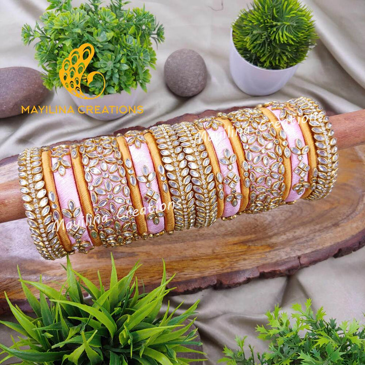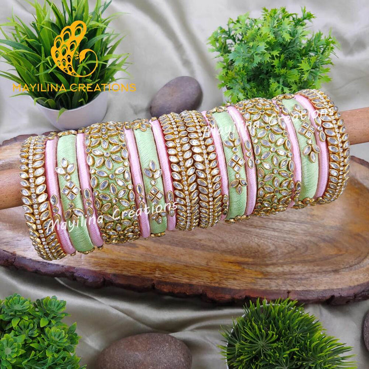 Umika - Heavy Kundan Silk Thread Bridal Bangles with Leaf Border Bangles for Women, for Wedding